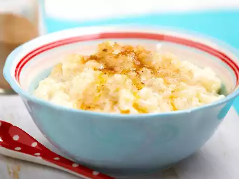 Bring milk to the boil, add rice and 1 pinch of salt. Leave to swell for about 30 minutes over low heat, stirring occasionally. Mix sugar with cinnamon. Arrange rice in bowls and sprinkle with cinnamon sugar.
