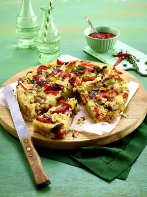 Add tomatoes, ketchup and chilli and bring to the boil. Let simmer open for about 5 minutes. Season salsa with salt and let it cool down. Let the finished quiche rest for about 10 minutes, then remove from the mould and serve with tomato salsa.
