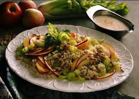 Garnish with retained celery green. Mix buttermilk and orange juice for the sauce. Season to taste with salt and pepper. Serve with salad.