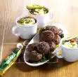 Drain rice on a sieve. Mix paprika-herbs with oil and 6 tablespoons of water. Mix pea-rice, mushrooms, paprika and the marinade. Leave everything to soak for 30 minutes. Peel garlic and press it through a garlic press. Mix mayonnaise, yoghurt and garlic. Season with salt, pepper and sugar. Drain the tuna and fold into the rice. Season again with salt and pepper. Cut the turkey breast into slices.