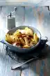 Quarter the pasta dough and roll it out very thinly one after the other with a pasta machine. Spread 1 pastry sheet thinly with water. Spray approx. 1/4 of the filling onto one half of the dough (approx. 12 piles). Fold the 2nd half of the dough over it and press it down lightly. Cut out ravioli with a dough wheel. Process the remaining dough and filling in the same way. Cook the ravioli in portions in boiling salt water for 3-4 minutes. Remove and place on a well oiled baking tray.
