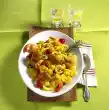 Prepare the pasta in boiling salted water according to the instructions on the packet. Peel onions and cut into strips. Wash sage, shake dry, pluck leaves from the stems. Leave bacon in a pan without fat until crispy.