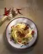 Add the tomatoes, pepperoni and garlic and sauté. Stir in balsamic vinegar and season to taste with salt and pepper. Drain the pasta. Arrange noodles and sauce garnished with basil on 4 plates.