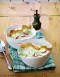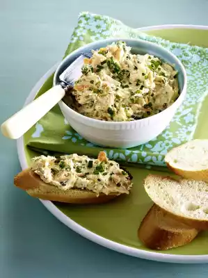 4 Wash, dry and chop the chives, add them ¾ to the salmon rillettes. Season with salt, pepper and chilli pepper. Sprinkle the remaining chives on top and serve with toasted slices of bread.
