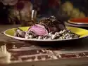 Cut the roast without bacon and serve with the vegetables. Serve garnished with parsley.