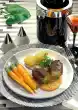 Wash the meat and dab dry. Rub with salt and pepper and place on a fat pan of the oven. Heat clarified butter and pour over the meat. Cook in the preheated oven (electric cooker: 200 °C/ gas: level 3) for approx. 13/4 hours. Gradually pour 3/8 litres of water over the meat. In the meantime wash and clean the peppers and cut them into strips. Wash, clean and slice the zucchini. Peel and chop the onions. Caramelize sugar in a large pot until golden brown. Deglaze with vinegar and 1/4 litre water and bring to the boil. Add mustard seeds, prepared vegetables and onions. Season with salt and pepper. Cook for about 12 minutes. Wrap roast beef in aluminium foil and keep warm. Loosen the roast and add to the vegetables through a sieve. Mix cornflour with a little water and thicken the vegetables. Season if necessary. Cut the roast into slices and arrange on a plate together with the vegetables. Garnish with parsley and sprinkle with chive rolls. Spaetzle go well with it