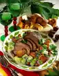 Finish frying. Cook the beans in little boiling salted water for 15-20 minutes. Heat the remaining clarified butter in a large pan and fry the potatoes until golden brown. Cut bacon into small cubes.
