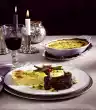 Add 2 tablespoons of oil to the hot roaster. Swivel onion rings, paprika and flour in a bowl, tap thoroughly, fry in hot frying fat while turning until golden brown, salt lightly and remove. Add the onion cubes to the hot frying fat, sauté briefly, deglaze with stock and let it simmer for about 5 minutes