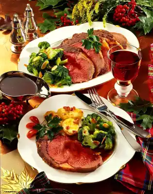 au gratin. Loosen the gravy with stock, sieve and bring to the boil. Thicken stock, season. Remove salt crust from meat. Serve everything