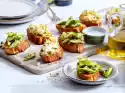 Preheat oven (electric cooker: 180 °C/circulating air: 160 °C/gas: see manufacturer). Place slices of bread side by side on a baking tray and drizzle with 4 tbsp. oil. Roast in the hot oven on the middle shelf for about 5 minutes. Cut garlic clove in half lengthwise. Remove bread from the oven and rub garlic on one side at a time.