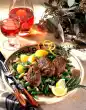 Carve tomatoes crosswise, blanch and skin them. Quarter them, remove seeds and dice finely. Wash basil, shake dry and cut the leaves into strips. Mix with the tomatoes. Season to taste with salt and pepper