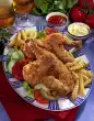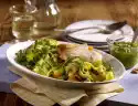 Peel and chop the garlic. Mix with honey, soy sauce, cayenne pepper and lemon peel. Spread the chicken with it about 15 minutes before the end of the frying time. Arrange everything and sprinkle with remaining coriander