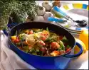 Roast on the oiled fat pan in a hot oven (electric cooker: 200 °C/circulating air: 175 °C/gas: level 3) for 1 1/4-1 1/2 hours. After approx. 20 minutes pour on half the stock