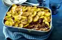 Preheat oven (electric cooker: 200 °C/circulating air: 175 °C/gas: see manufacturer). Divide garlic bulb into cloves. Peel, wash and cut potatoes into thick slices. Heat 2-3 tablespoons of oil in a large roaster.