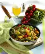 In the meantime, clean, wash, peel and cut the carrots into small pieces. Put them into the fat pan 1/2 hour before the end of the cooking time. Deglaze with 1/2 litre water. Season with salt and pepper. Peel and slice onions.