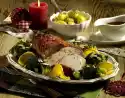 Place on an oven rack and season with salt and pepper. Slide the fat pan underneath. Cook in the preheated oven (electric cooker: 175 °C/ circulating air: 150 °C/ gas: level 2) for about 1 1/2 hours. Clean and wash the soup greens, cut them into pieces and spread them on the fat pan. Add the remaining rosemary. Wash the potatoes and cook in boiling water for 15-20 minutes. Then rinse with cold water and peel. Pour 1/4 litre of salted water over the roast after 40 minutes. After another 20 minutes add another 100 ml of water and white wine. In the meantime, peel onions and cut them into slices. Wash the tomatoes. Put beans unfrozen in 125 ml boiling water. Bring to the boil covered and cook for 5 minutes. Drain. Pour stock through a sieve, bring to the boil, stir in tomato paste. Stir flour and 4 tablespoons of water until smooth, thicken stock with it. Boil up while stirring. Season to taste with salt and pepper.