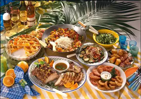 In the meantime, mix orange jam, 4 tablespoons orange juice, mustard and sugar for the glaze. Spread on the roast about 5 minutes before the end of the cooking time. Deglaze with remaining orange juice. Dissolve the roast, pour into a pot and bring to the boil briefly on the stove. Season with Tabasco and orange liqueur. Serve everything garnished with fresh herbs and orange wedges