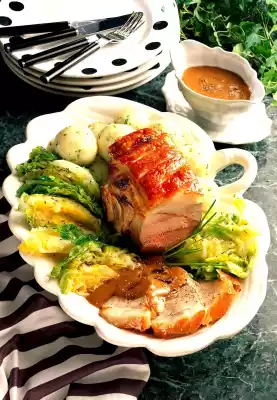 Wash the meat and dab dry. Rub vigorously with salt and pepper. Place meat on the fat pan of the oven and cook in the preheated oven (electric: 200 °C/ gas: level 3) for approx. 1 1/2 hours.
