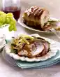 Heat 2 tablespoons of oil in a frying pan. Brown the meat well all around, take it out. Roast carrots, onions and celery in hot frying fat for 4-5 minutes, season with salt and pepper. Stir in tomato paste and roast for 1-2 minutes. Add stock and red wine, bring to the boil. Place the roulade in the sauce, cover and braise in the preheated oven (electric cooker: 175 °C/ convection oven: 150 °C/ gas: level 2) for about 1 1/2 hours. Approx. 10 minutes before the end of the cooking time, brush the roast with honey and finish cooking open