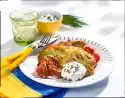 Sweat 1-2 teaspoons curry in the frying fat. Deglaze with 1/4 l water. Add peas, cover and cook for about 5 minutes. Season to taste with salt, pepper, curry and chilli. Whip cream until half stiff. Stir carefully into the sauce. Add potatoes and shrimps, heat up. Wash the mint, pluck off the leaves and sprinkle on top