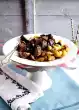Parsley wash, dry shake and, to 1 stalk to garnish, pluck off leaves and chop finely. Arrange Kasseler-Gulasch in a bowl, sprinkle with spring onions. Arrange fried potatoes with pumpkin, sprinkle with parsley and garnish.