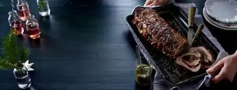 Remove the roast, wrap in foil and let it rest for about 10 minutes. If necessary prepare gravy. Cut the roast open, arrange with salsa and gravy.