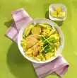 Arrange meat and vegetables on a plate. Sprinkle the vegetables with the parsley. Add sauce extra. Potatoes taste good with it.