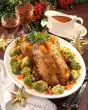 Cook open at the same temperature for a further 30 minutes. Form 8 dumplings from the potato dough. Put the dumplings in plenty of boiling, slightly salted water and bring to the boil briefly. Cook in an open pot at low heat for about 20 minutes.