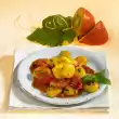 For the chutney, peel and finely chop the shallots. Clean, seed, wash and finely chop the chilli. Clean, wash and finely chop the rhubarb. Heat 2 tablespoons of oil. Fry shallots, chilli, mustard seeds and rhubarb.