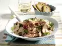 Deglaze with broth little by little. In the meantime clean, wash and slice the tomatoes. 5 minutes before the end of the frying time, add to the fat pan. Halve the avocado, remove the core and remove the flesh from the skin with a spoon.