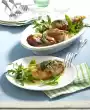 Clean, wash and spin dry the salad and cut into coarse strips. Halve the avocado, stone it, remove the flesh from the skin and cut into pieces. Sprinkle with the rest of the lemon juice.