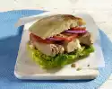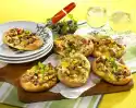 First cut the bread in half crosswise, then cut through horizontally. Sprinkle with 2-3 tablespoons of oil. Roast in a hot oven for 5-10 minutes until golden brown.
