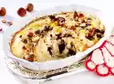 Remove the casserole, sprinkle with basil strips and garnish with leaves.
