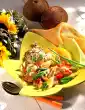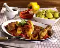 Wash the remaining thyme and dab dry. Finely grind the spices in a mortar. Meanwhile cook spaetzle in boiling salted water for about 15 minutes. Drain spaetzle, mix with fat, season with nutmeg and keep warm.