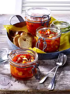 Peel the skin off the peppers. Cut the pods into strips. Peel garlic and cut into slices. Mix paprika and garlic in a bowl and season with salt and pepper. Place the peppers in clean, well-closed jars, pour olive oil on top so that the peppers are covered with oil.