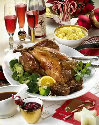 Remove the turkey from the oven, lift it from the fat pan and keep it warm. Pour the roast stock through a sieve into a small pot. Bring to the boil, simmer over low heat for 4-6 minutes. Season with salt, pepper and sugar.