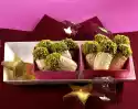 sprinkle almond flakes over the broccoli. Garnish with parsley and orange slice. Add mashed potatoes and sauces separately.
