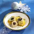 Roast the almonds in a pan without fat until golden and take them out. Then season with clove and orange peel. Pour the sauce into a bowl and put it in a cool place. Peel, wash and halve the potatoes.