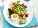 Mix vinegar, salt, pepper, 1 pinch of sugar and mustard. Stir in 2-3 tablespoons of oil. Slice or grate the parmesan. Pluck salads a little smaller. Mix with mushrooms, croutons and marinade. Arrange on plates and sprinkle Parmesan cheese on top.