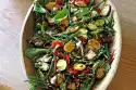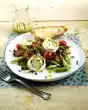 Clean and wash the mushrooms and, depending on their size, halve or quarter them. Peel garlic and chop finely. Peel, wash and cut carrots into sticks. Clean, wash and drain leaf salads. Dice bread.