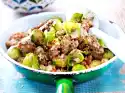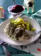 Season to taste with salt, pepper, lemon peel and lemon juice. Serve the risotto with meatballs. Add the rest of the cream cheese in flakes.