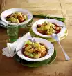 Remove the lettuce leaves from the stalk, wash and drain. Wash tomatoes, grate dry and cut into slices. Dab meat dry. Season with salt and pepper. Heat 2 tsp. oil in a large frying pan.