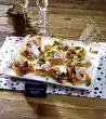 Clean and wash the zucchini, cut them into thin slices and blanch them briefly in boiling water. Drain in a sieve. Wash, clean and quarter the tomatoes, remove the seeds. Cut the flesh into small cubes.