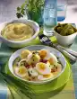 Drain the shiitake and cut into 0.5 cm thick strips. Place a nori leaf on a bamboo mat, place a thin layer of rice on the front part, up to almost half of the leaf and press down lightly. Dip hands in vinegar water in between. Spread rice very thinly with wasabi. Now place 3 cucumber and surimi sticks or shiitake and avocado sticks on top. Moisten the rear edge of the nori leaf slightly with vinegar water: Roll everything up using the bamboo mat and press into shape. Form 3 more rolls in this way and chill for about 30 minutes. Cut the sushi rolls into about 8 pieces each