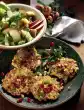 Wash, quarter and core the apples. Cut apple quarters into slices. Clean, wash and cut celery into pieces. Clean, wash and cut romaine lettuce into strips. Cut toast into cubes and fry in hot fat until crispy brown.