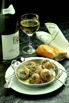 Wash snails and let them drain on a sieve. Wash parsley and chop finely. Peel shallots and garlic and also chop finely. Cream butter and mix with parsley, shallots and garlic.