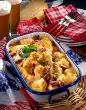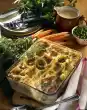 Pour the mixture over the vegetables and bake in a preheated oven (electric: 175°C/ gas: level 2) for 45 minutes. Serve the casserole sprinkled with the remaining marjoram leaves.