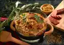 Mix the rice, sauerkraut, paprika and bacon-onion mixture and place in a greased casserole dish. Wash and chop the marjoram, except for a few leaves for garnishing. Mix sour cream and stock, stir in marjoram and season cream with salt and pepper.