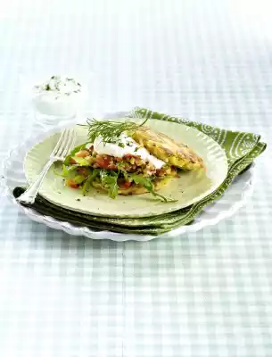 Keep finished Rösti warm. Fry the remaining 4 Rösti with 1 tbsp. oil in the same way. Clean and wash the rocket. Place 1 Rösti on each of 4 plates. Cover with some rocket. Add salmon tartare and herb quark. Put 1 Rösti on each plate.
