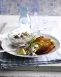 Stir into the yoghurt. Fold in radishes, spring onions, cucumber and matie. Arrange rösti and matie salad on plates. Garnish with dill and lemon wedges.